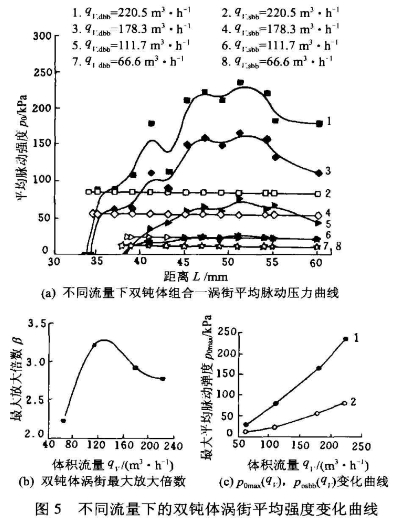 圖(tú)5b是不同流量下的(de)渦街平均脈動強(qiang)度最大的放大倍(bèi)數👄,這時定義