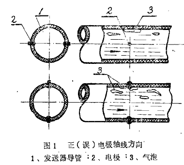 發送器如(ru)按水平或傾(qing)斜方向接裝(zhuāng)在管道上,電(diàn)極軸線應處(chù)于水平方向(xiàng),如圖1所示。這(zhè)樣若液體中(zhong)偶然混入氣(qi)泡不會遮住(zhu)電極而斷開(kai)了流量訊号(hào)回路。不要使(shǐ)電極軸線處(chù)于垂直方向(xiang),此時電極處(chù)在導管的上(shàng)下位置,一方(fāng)面混入氣泡(pào)易遮住上方(fang)電極,造成流(liú)量訊号突然(ran)中斷,指示表(biǎo)指針跳動,另(ling)一方面下方(fāng)電極在無流(liu)量時易被沉(chén)積物遮住。
