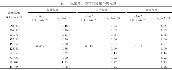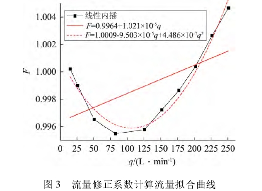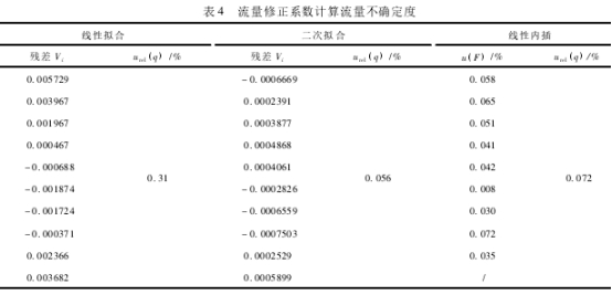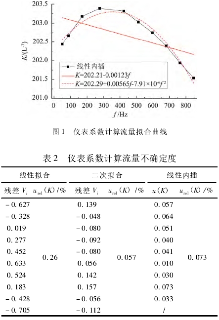 1.1最小(xiǎo)二乘法 通過最(zui)小二乘法拟合(hé),可獲得y(K,△q,F)與x(ƒ,q,q)的函(han)數關系,可通過(guò)式🤩(4)表示,當c=0時爲(wèi)線性拟合,當c≠0時(shí)爲二次拟合。本(ben)文中未對更㊙️高(gao)階次拟合方法(fa)進行探讨。 1.3流量(liang)相對不确定度(dù)計算. 1.3.1儀表系數(shù)計算流量 通過(guò)最小二乘法或(huò)線性内插法獲(huo)得儀表系數K與(yu)頻率ƒ之間的函(han)數關系,由拟合(he)計算引入的相(xiang)對标♍準不🎯确定(dìng)度可由式(9)計算(suàn),其中`K通過式(10)計(ji)算。(K)分别通過式(shì)(6)或🈲式(8)計算。 1.3.2流量(liang)修正值計算流(liú)量 通過最小二(er)乘法或線性内(nei)插獲得流量修(xiū)正值△q與流量q之(zhī)間的函數關系(xi),由拟合引入的(de)相對标準不确(que)定度可📱由式(11)計(ji)算,其中q是某示(shì)值流量。u(△q)分别通(tōng)過式(6)或式☂️(8)計算(suan)。 1.3.3流量修正系數(shu)計算流量 通過(guo)最小二乘法或(huo)線性内插獲得(de)流量修正系數(shù)F與♋流量q之間的(de)函數關系,由拟(nǐ)合引入的相對(duì)标準不确定度(du)可由式(12)計算,u(F)分(fèn)别通過式(6)或式(shi)(8)計算。 2計算實例(lì) 渦輪流量計 、容(rong)積式流量計、科(kē)裏奧利質量流(liú)量計、電磁流量(liang)計等🐕性能💁優良(liang)的流量計均可(ke)作爲标準流量(liang)計使用。以圓💁柱(zhù)齒輪流量計爲(wei)例👈進行标準流(liu)量及不确定度(dù)計算🤩。圓柱齒❌輪(lun)流量計屬于容(rong)積式流量計,對(dui)于中高粘度液(yè)體介質具有良(liáng)好計量性能。表(biǎo)1是某齒👌輪流量(liàng)計校準數據。表(biao)中示值通過平(ping)均儀表系數”和(hé)對應流量點頻(pín)率計算。 2.1儀表系(xi)數計算流量 由(you)于圓柱齒輪流(liú)量計内部齒輪(lún)與殼體之間存(cún)在間隙,導💰緻流(liu)💛量計運行時存(cun)在内洩露,内洩(xie)露存在層流模(mó)式和湍⛷️流模式(shi)兩種形式r,可分(fen)别用式(13)和式(14)表(biao)示。 式中:C1爲層流(liú)狀态下與流量(liàng)計結構有關的(de)常數;C2爲湍流狀(zhuàng)态下與流量計(ji)結構有關的常(cháng)數;△p爲流量計前(qián)後✂️壓降;η爲流體(tǐ)動㊙️力粘🔴度。 齒輪(lún)流量計内洩露(lù)随轉動速度改(gai)變而變化,其儀(yi)👣表♉系數♻️并🔅非恒(héng)定數值,而是随(sui)轉動頻率非線(xiàn)性變化的。圖1是(shi)齒輪流量計儀(yi)表系數與頻率(lü)之間的拟合曲(qǔ)線💋。通過最小二(èr)乘法線性拟合(hé)引入的不确定(dìng)度約爲0.26%;而最小(xiao)二乘法二次拟(ni)合引入的不确(que)定度降低很多(duo),約爲0.057%;通過線性(xing)🐉内插方法引🔴入(rù)不确定.度💚約爲(wei)0.073%,與二次拟合引(yǐn)入的不确定度(du)比較接近。 2.2流量(liàng)修正值計算流(liú)量 由于内洩露(lù)的存在,各流量(liang)點流量修正值(zhí)随流量呈非線(xian)性變化。圖2是齒(chǐ)輪流量計流量(liang)修正值與流🔆量(liang)示值之😄間的拟(nǐ)合曲線。通過最(zui)小二乘法線性(xing)拟合引入的絕(jué)對不确定度約(yue)爲0.455L/min;而最小二乘(chéng)法二次拟合引(yin)入的不确定♌度(du)約爲0.110L/min;通過線性(xìng)内🙇🏻插方法引❓入(rù)不确定度約爲(wei)0.113L/min,與二次拟合引(yǐn)入的不确定度(du)相當。采用流量(liang)修正值計算流(liú)量,在低流量段(duàn)引入的相對不(bú)确定度較大,三(san)種方法引入相(xiang)對的不确定度(dù)分别爲3.08%,0.74%,0.76%。 2.3流量修(xiu)正系數計算流(liu)量 圖3是齒輪流(liu)量計流量修正(zhèng)系數與流量示(shì)值之間的拟合(he)曲線。通過最小(xiǎo)二乘法線性拟(ni)合引入的相對(duì)不.确定度約爲(wèi)0.31%;而最小二乘法(fa)二次拟合引入(rù)的不确定度約(yue)爲0.056%;通過線性内(nei)插方法引🈲入不(bu)确定度約爲0.072%,與(yǔ)二次拟合引入(rù)的不确💞定度比(bi)較接近。 3總結 對(dui)标準法裝置中(zhōng)幾種非定點使(shi)用流量計算方(fāng)法和算法引入(rù)🔴的不确定度評(ping)估方法進行了(le)介紹,并以某齒(chi)輪流量計校🌈準(zhun)數據爲實例進(jìn)行了計算及✂️分(fèn)析。經總結, 标準(zhun)表法流量标準(zhun)裝置應用中應(yīng)注意以下幾點(diǎn):①采用最小二乘(cheng)法拟合計算标(biāo)準流量,拟合階(jiē)次需🈚結合流量(liang)計自☂️身特性确(què)定,可有效降低(di)計算方法引入(rù)的不确定度;②采(cai)用線性内插法(fa)計算标準流量(liang),在上級校💔準.流(liú)量點🌏足夠多的(de)情況下,相鄰數(shu)據點🈲内插引入(ru)的不确定度可(ke)滿足标準裝置(zhi)整體要求,無需(xū)過多關注流量(liàng)計自身特性;③采(cai)用流量修正值(zhi)計算标準流量(liàng),采用最小二乘(chéng)法和線性内插(chā)法在🥰低流量區(qu)域引入的🧑🏾🤝🧑🏼相對(duì)不确定度較‼️大(da),④對于脈沖信号(hào)輸出🏃🏻♂️類型流量(liàng)計,建議采用儀(yí)表系數進🚶行标(biāo)🚶準流量計算;⑤對(duì)于模拟量或數(shu)字.通信信号輸(shū)出類型流量計(jì),建議采用流量(liang)修正系數進行(hang)标準流量❓計算(suan)。