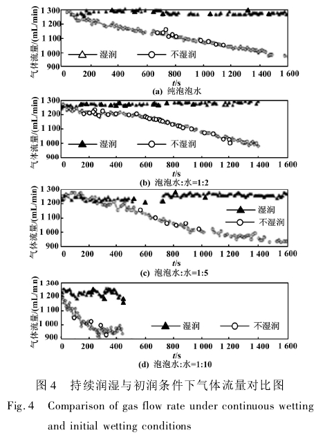 持續濕(shi)潤與初潤(rùn)條件下,氣(qì)體流量對(duì)比如圖4所(suǒ)示。