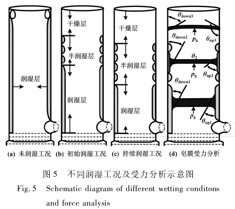 皂管(guǎn)内壁不同(tóng)潤濕工況(kuàng)及皂膜的(de)受力分析(xi)如圖5所示(shì)🔴。