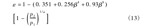 式(shì)中:ε爲可膨(peng)脹性系數(shu);β爲節流孔(kong)直徑與測(ce)量管直徑(jing)的比值;p,爲(wei)節流孔上(shàng)遊壓力,Pa;p2爲(wèi)節流孔下(xià)遊壓力,Pa;K爲(wèi)流體等熵(shang)指數。