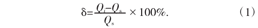 式中(zhōng):δ爲電磁流量(liang)計的流量示(shi)值誤差,%;Qi爲電(diàn)磁流量計的(de)工作點流量(liàng)值,m3/h;Qs爲标準表(biǎo)便攜式超聲(sheng)流量計顯示(shi)的流量值,m'/h。