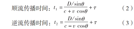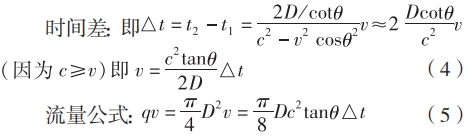 式(shi)中:c一靜止流體(tǐ)中的聲速,m/s;ʋ一-流(liu)體流速,m/s;θ一流體(tǐ)靜止時超聲❌軌(guǐ)迹與管道軸線(xian)之間的夾角,°;D-管(guǎn)道直徑,1mm;r←超聲波(bō)在管壁⭐内和電(diàn)脈沖信号在電(diàn)路中傳輸所産(chan)生的😍滞後時間(jiān)的總和,s。