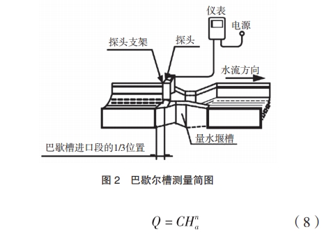 安裝于(yú)巴歇爾槽上遊(yóu)收縮段,巴歇爾(ěr)槽把流量轉成(chéng)液⭐位,通過測量(liang)明渠流量計下(xia)方巴歇爾槽收(shou)縮段内水流的(de)液位,再根據相(xiang)應巴歇爾槽的(de)水位與流量的(de)關系,通過計算(suan)公式轉換爲排(pái)水流量。巴歇爾(ěr)槽測量原理見(jiàn)圖2,流量計算☀️公(gōng)式如下: