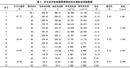 試驗條件(jian):傳感器50mm口徑(jing),電極材料316L不(bu)鏽鋼,傳感器(qi)系數1.1089,常溫常(chang)壓✂️水,電子秤(chèng)稱重法。進行(hang)系統零點和(he)滿量程校正(zhèng),未做逐點非(fēi)線性校正。表(biǎo)4說明本文的(de)方案在0.5 ~5m/s的流(liú)速範圍内的(de)測量結果達(da)到±0.2%的示數誤(wu)差,重複性優(you)于萬分之四(si)。