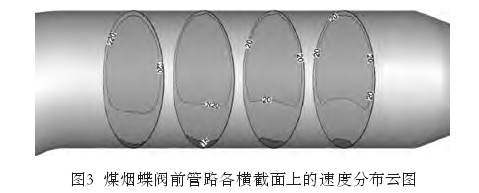 對蓄熱式闆(pan)坯加熱爐煤(méi)煙管路未安(an)裝流量計的(de)情況進行了(le)數值模拟,用(yong)于分析管道(dào)内流體的流(liu)動狀态,确✌️定(ding)流💚量計的最(zui)佳安裝方案(àn)。數值模拟方(fāng)法是研🌐究流(liu)量傳感器特(tè)性的有效手(shǒu)段之一,既可(kě)降低成本,又(you)可提高效率(lü)凹。所以采用(yong)數值模拟的(de)方法對煤煙(yān)🈲管路進行分(fen)析,從而得到(dao)管路内的氣(qi)🐉流分布規律(lü)。分析時,工況(kuàng)選取爲正常(cháng)工況(常用流(liu)㊙️量20.808kg/s)。圖2和圖♈3爲(wèi)蓄熱式闆坯(pi)加熱爐煤煙(yān)管路内截面(miàn)上的速度分(fèn)布雲圖。