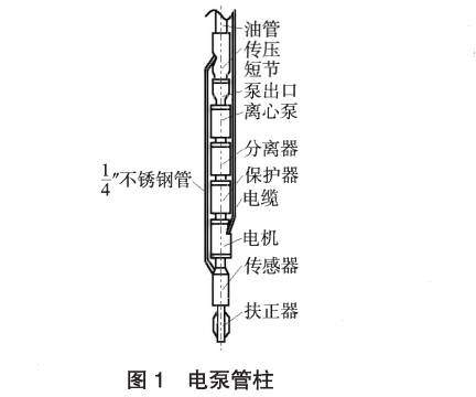 正(zheng)常電泵(beng)管柱上(shàng),在潛油(you)電機的(de)尾部加(jia)裝一台(tai)井下傳(chuán)感器,傳(chuan)感器尾(wěi)部加裝(zhuang)扶正器(qi),從傳感(gǎn)器頭部(bu)引出一(yi)根1/4"不鏽(xiu)鋼管(圖(tu)1)。在離心(xīn)泵出口(kou)上安裝(zhuāng)引壓接(jie)頭,接頭(tou)上方連(lian)接油管(guǎn)至井口(kou)。1/4"不鏽鋼(gang)管與引(yin)壓🏃♂️接頭(tóu)相連,将(jiang)泵出口(kǒu)的壓力(li)傳到井(jing)下傳感(gǎn)器。鋼管(guǎn)上、下均(jun)要做好(hǎo)密封,密(mi)封壓力(li)大于40MPa。通(tong)⭐過井下(xia)通信模(mó)塊,将傳(chuán)感器采(cai)集的壓(ya)力、溫度(dù)、振動、流(liú)量等參(cān)數信号(hào)通過電(dian)機尾🆚部(bù)星點,電(diàn)磁線、動(dong)力電纜(lan)傳至地(di)面,然後(hou)通過地(di)面解✊調(diào)模塊讀(du)出參數(shù)數據,進(jin)而進行(háng)數據操(cāo)作與分(fèn)析。