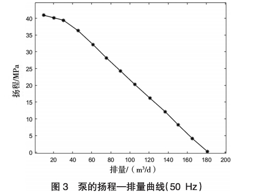泵性能(néng)曲線,即(ji)是測出(chu)不同排(pai)量下的(de)揚程、電(diàn)流、軸⭕功(gong)率💃等數(shù)據,用以(yǐ)判定電(dian)泵是否(fou)符合GB/T16750--2015《潛(qián)油電泵(beng)機組》的(de)要求。由(you)于泵性(xìng)能曲🏃♀️線(xian)是在地(dì)面完成(chéng)的,測出(chū)✌️的試驗(yan)數據實(shi)際就是(shì)泵出口(kou)在不同(tóng)排量下(xià)的壓力(lì)數據。如(ru)果在油(yóu)井井下(xià)端測出(chū)泵出口(kǒu)🧑🏽🤝🧑🏻壓力、吸(xi)人🐉口壓(yā)力,就可(kě)以近似(sì)得出在(zai)一定壓(ya)力下的(de)排量數(shù)🔴據,實驗(yàn)井50Hz工頻(pin)的排量(liàng)壓力曲(qǔ)線如圖(tú)3所示。