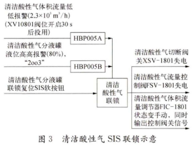 4)清(qīng)潔酸性氣(qi)安全儀表(biǎo)系統(SIS)聯鎖(suo)如圖3所示(shì),因三路酸(suan)性氣對主(zhǔ)燃燒爐正(zheng)常運行是(shì)相互獨立(li)的,同時考(kǎo)慮到其中(zhōng)一路或🤩兩(liǎng)路酸性氣(qì)突然中斷(duan)或體積流(liu)量降低,防(fang)止酸性氣(qi)倒竄回火(huo),三路酸性(xing)氣流量低(di)低參與清(qīng)潔酸性氣(qi)SIS聯鎖。綜上(shang)四點,三路(lù)酸性氣流(liú)量計測量(liàng)結果的正(zhèng)确♌性及穩(wen)定性至關(guan)重要。
