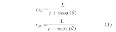 利用(yòng)tAB和tBA之差計(jì)算介質流(liu)速如式(2)所(suo)示: