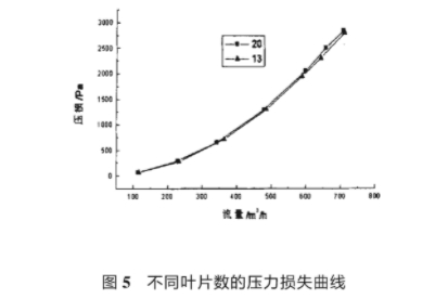 流(liu)量計常用葉(yè)輪葉片數爲(wèi)13,葉片形狀爲(wei)矩形。爲提高(gāo)流量計🚶♀️的靈(líng)敏度作者對(dui)葉輪作了改(gai)造,将葉片數(shu)增爲20,葉片形(xíng)狀設計成葉(ye)頂寬葉根窄(zhai)的倒梯形形(xing)狀梯🌂形尺寸(cun)以保證相同(tong)重疊度爲🔞原(yuán)則。圖5爲分别(bié)采用13和20葉片(piàn)數的葉輪後(hou)流量計壓損(sǔn)曲線圖。可看(kan)到兩條曲線(xian)幾乎重合。說(shuō)明在允許範(fàn)圍内,葉輪葉(ye)片數的增減(jian)以及葉片形(xíng)狀的改變對(dui)壓力👌損失的(de)影響可以忽(hu)略。但通過☎️對(dui)起始流量的(de)測量發現,對(duì)13葉片數葉輪(lún),測得流量計(ji)起始流量爲(wei)🆚7.5m³/h,而對20葉片數(shù)葉輪則爲6.5m³/h,可(ke)見适當增加(jia)葉🈲片數和重(zhong)疊度,可以在(zài)不增加壓損(sǔn)的前提下較(jiao)明顯地提高(gao)流量計的靈(líng)敏度。