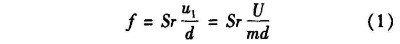 式中,u1爲旋(xuán)渦發生體兩(liǎng)側平均流速(su),m/s;d爲旋渦發生(shēng)體特✊征寬度(dù)🔴,m;Sr爲斯特勞哈(hā)爾常數,無量(liang)綱參數;U爲流(liu)經流量計的(de)🔴流體平均流(liu)速,m/s;m爲旋渦發(fā)生體兩側弓(gong)形面積與管(guan)道橫🐕截面面(miàn)積之比,對于(yú)直徑爲d的圓(yuán)柱形旋渦發(fā)生體,m爲