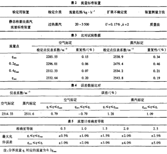 表2爲采(cai)用以蒸氣爲(wei)檢定介質進(jìn)行标定的流(liu)量标準裝置(zhì)的🈲參⚽數信息(xī)。