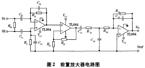 前置放(fàng)大器由(you)電荷/電(diàn)壓轉換(huan)器、電壓(yā)放大器(qi)、低通濾(lü)波器組(zu)♈成。采用(yong)雙端輸(shū)人的電(dian)荷/電壓(yā)轉換器(qi),它把探(tàn)頭壓電(diàn)晶體輸(shū)出的交(jiāo)變電荷(he)信号變(biàn)換成與(yǔ)電荷量(liàng)成正比(bi)的電壓(ya)信号。電(diàn)壓放大(dà)器則利(li)用同相(xiàng)輸人的(de)🚶放大器(qì)來得到(dao)幅度适(shi)當的電(diàn)壓信号(hào)。設置低(di)通濾波(bo)✊器的作(zuò)用是爲(wèi)了消除(chú)渦街信(xìn)号中夾(jiá)帶的複(fu)雜噪🈲聲(shēng)。前置放(fàng)大器具(ju)體實現(xiàn)電路如(ru)圖2所示(shi)。