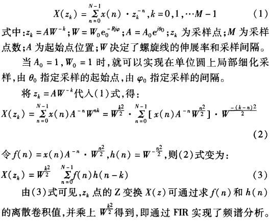 N點FFT計算(suan)的頻譜(pu)實際上(shàng)是Z平面(miàn)單位圓(yuán)上的N點(diǎn)等間隔(ge)🐪采♌樣,Chirp-Z變(bian)換(即CZT)是(shi)Z平面螺(luó)旋線周(zhōu)線上Z變(bian)換的等(deng)間隔取(qu)樣,這些(xiē)取樣在(zai)螺旋線(xian)的某--部(bù)分上按(an)等角度(du)☎️分布。具(jù)體地說(shuo),令x(n)表示(shì)N點序列(lie),X(z)表示其(qí)Z變換,而(er)利用CZT算(suàn)法,可以(yi)計算給(gěi)定點z的(de)X(z),N點x(n)的Chirp-Z變(biàn)換爲: