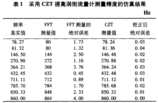 用同(tong)樣的方(fang)法,通過(guò)對待檢(jiǎn)測的氣(qi)體流量(liang)輸出信(xìn)号❤️頻率(lǜ)的各🔞頻(pin)段各取(qu)2個頻率(lǜ)點,共8組(zǔ)數據,進(jin)行仿真(zhen)實驗,将(jiāng)📞FFT方法和(he)CZT方法進(jìn)行比較(jiào),結果如(ru)表1所示(shi)。從表1可(kě)以看出(chū),經CZT方法(fa)校正後(hou)的絕對(dui)誤🔴差基(ji)本控制(zhì)在0.02Hz内,精(jīng)度大大(dà)提高。