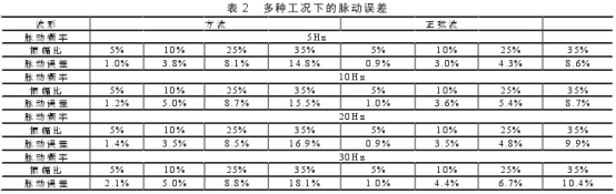 再(zài)由轉速n計算渦(wō)輪流量計的儀(yi)表系數K。折算後(hou)的👉儀表✍️系數結(jié)果如表2所示,脈(mò)動流下的渦輪(lun)流量計存在着(zhe)正㊙️誤差🏃🏻♂️,相同振(zhèn)幅、頻率下,不同(tóng)波形脈動流♌對(duì)渦輪流量計的(de)影響依然存在(zai)差異性。