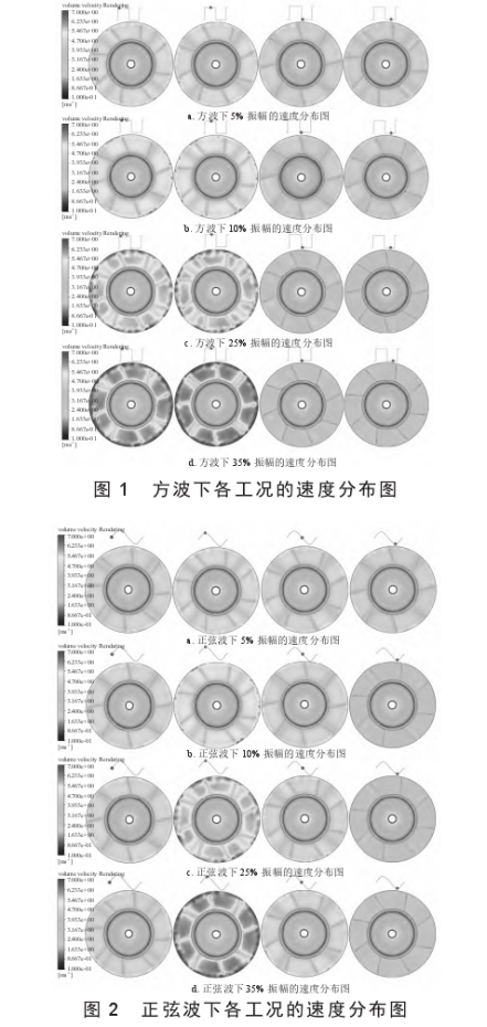 對比兩種波形(xíng)的速度分布圖(tú),同振幅下的波(bo)峰時,方波工♉況(kuang)🔴下流場速度略(luè)大于正弦波工(gong)況,且方波🆚的高(gāo)流速持續時間(jiān)㊙️比正✂️弦波的高(gāo)流速持續時間(jian)長。