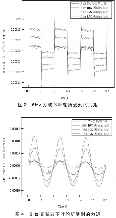 圖3~圖4分(fen)别是5Hz時方波、正(zheng)弦波脈動流下(xia)葉輪,所受力矩(ju)。除了流🌈量突變(bian)點外,葉輪所受(shou)力矩與流量波(bō)形近似。