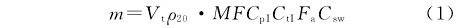 式(shi)中:m---原油在空(kong)氣中的淨質(zhi)量,kg;Vt---原油通過(guò)流量計的計(jì)量體積值♋,m3;p20---原(yuan)油在标準大(dà)氣壓下20℃時的(de)密度,kg/m3;MF---流量計(ji)系數;CpI---原油體(ti)積壓🔞力修正(zhèng)系數;Cui---原油體(ti)積溫度修正(zheng)系數;Fa---空氣浮(fú)⚽力修正系數(shù);Csw---原油質量含(hán)油系數。