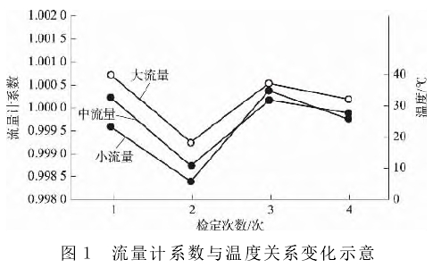 檢(jian)定過程中,一(yī)般按被檢流(liu)量計額定流(liu)量的70%,50%,30%設爲大(dà)、中、小流量檢(jiǎn)定點,通過對(dui)流量計在線(xian)采集的數據(ju)進行分析。選(xuǎn)☔用其中變化(huà)明顯的4次檢(jiǎn)定流量數📱據(jù),流量計系數(shù)與溫度♍關系(xì)變化如圖1所(suo)示。4次檢定數(shù)據出現規律(lǜ)性的變化,其(qi)變化趨勢和(he)檢定油溫變(biàn)化趨勢一緻(zhì),說明原油溫(wēn)度的高低決(jue)定了流量計(jì)系數的大小(xiǎo)💰。
