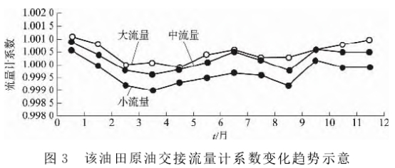 以該油(you)田原油交接(jiē)小、中、大流量(liang)運行狀況爲(wèi)例,流量計系(xi)❗數變化趨勢(shi)如圖3所示。由(you)圖3看出,中流(liu)量運行狀⛷️況(kuàng)最優。說明該(gai)流量計日常(chang)運行流量與(yu)檢定💁時的流(liú)量保持一緻(zhi),變💁化最優。
