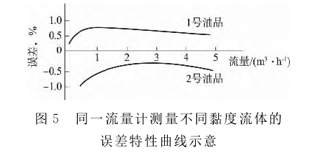 黏度是影響(xiang)流體流動的(de)一種性質,當(dang)流體黏度增(zēng)大時,流🏃♀️量計(ji)内流動阻力(li)增大,導緻壓(ya)差增加。當測(ce)量精度低于(yu)0.1級🐅時,可以不(bú)考慮黏度的(de)影響;當測量(liang)精度高🐇于0.1級(jí)時,就必須考(kǎo)慮這種影響(xiǎng)✨。閱讀文獻得(dé)知由于黏度(dù)具有兩重性(xing),由它♉引起的(de)流量計進出(chū)🤩口壓差增加(jia),導緻漏失量(liàng)增大的影響(xiǎng)可以忽略。因(yīn)此,當流體黏(nián)度η變化時,流(liú)量計的E與1/η成(cheng)線性關系,即(jí)黏度增加,漏(lou)失量減少,流(liú)量計誤差特(te)性曲線向正(zhèng)方向偏移,圖(tú)5是使用🚩同一(yī)流量計測量(liang)不同黏度流(liu)體得出的誤(wù)差特性曲線(xian)。