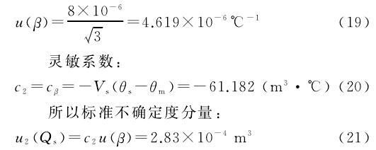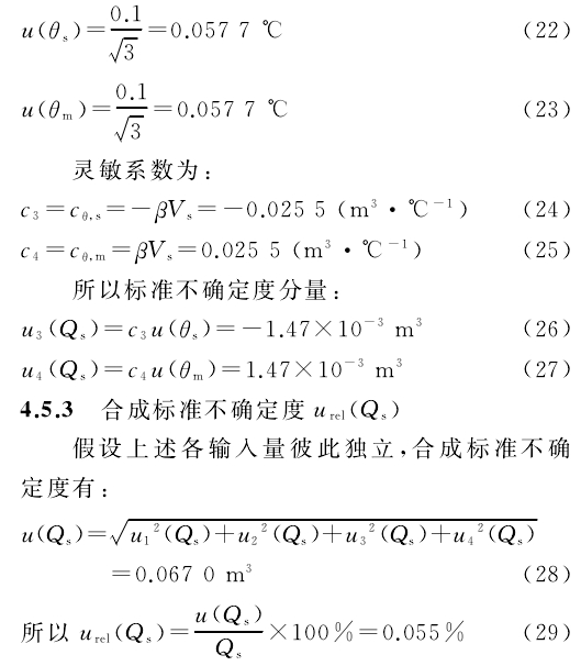 3)标準器和(he)流量計處的(de)液體溫度θs,θm引(yin)人的标準不(bu)确定度分量(liàng)u3(Qs)、u4(Qs)