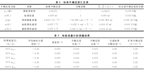 根(gēn)據表2中的數(shu)據,由不确定(ding)度傳播率公(gong)式U2c=Σu2i,分析各标(biao)準不确💃定度(dù)分量方差u2i對(duì)合成标準方(fang)差U2c的影響⛹🏻♀️程(cheng)度,得到測量(liang)重複☁️性、标✍️.準(zhǔn)裝置及溫度(dù)、壓力和膨🚶♀️脹(zhang)系數等其他(tā)因素引人的(de)分🈲量在最終(zhong)評定結果中(zhōng)的占比🍉分别(bié)爲6.1%、93.8%、0.1%。同理,根據(ju)校準原始記(jì)錄對其餘🛀🏻各(gè)流量校準點(diǎn)引人的不☂️确(que)定度urel(Q)和urel(Qs)進🤟.行(háng)分析,得到電(dian)磁流量計💔的(de)測量結果如(ru)表3所示。