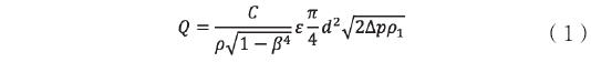式(1)中(zhōng),C一流出系數;ε一膨(peng)脹系數;D一管道内(nèi)徑(m);d一節流孔徑(m);△p一(yi)壓力差(Pa);ρ1一流體密(mi)度(kg1m3);β一直徑比;qm一質(zhi)量流量(kg/s)。