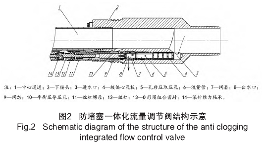爲(wei)解決現有調節閥(fa)和流量計存在的(de)流道複雜,調節閥(fa)過流環❤️空尺寸小(xiao)帶來的堵塞和沉(chén)積問題,結合偏心(xīn)孔闆差壓流量計(ji)的結構方案,設計(ji)了一體化流量調(diào)節閥✔️,其結構如圖(tú)2所🛀🏻示。儀器下井時(shi)左端在上右端在(zai)下,流體🧑🏽🤝🧑🏻從下端進(jìn)人,經過偏🏃心孔闆(pan)流🈲量計組件後通(tōng)過調節閥閥芯和(he)閥套,直接從出水(shuǐ)口進人地層。調👨❤️👨節(jiē)閥采用平衡壓結(jié)構設計,閥芯上端(duan)設置導壓孔引入(rù)管内壓力,使得閥(fa)芯上端和下端壓(yā)力平衡,降低調🚶節(jiē)阻力。調節閥采用(yòng)絲杠傳動機構,閥(fa)芯内置絲杠螺母(mǔ),傳動絲杠采用密(mì)封圈進行組合密(mi)封,尾端采用推力(li)軸承承載壓差力(lì),可滿✨足60MPa的使用要(yào)求。節流孔闆後🐉端(duan)爲直通通道,減小(xiao)堵💃塞風險。停注時(shi)泥沙自動下落‼️,不(bu)存在沉積風險。通(tong)過樣機實驗測得(dé),該一體化流量調(diao)節閥60MPa環境壓力下(xia)最大調節扭矩爲(wei)1.8N·m。