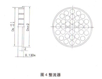 3、 整流(liu)器的安(an)裝:場地(dì)限制,直(zhí)管段無(wu)法滿足(zú),應安裝(zhuang)整流器(qi),見圖4,是(shì)一種非(fei)均勻分(fèn)布多孔(kǒng)整流器(qi),結構簡(jiǎn)單⛷️,成本(běn)低,安裝(zhuang)方便,阻(zǔ)力損失(shi)小,安裝(zhuāng)見圖5。