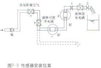 傳感器安裝(zhuang)方向可水平、垂(chui)直或傾斜。因爲(wei)流量計在工作(zuo)時🥵,始‼️終要求測(cè)量管内充滿被(bèi)測介質。水平安(ān)裝⭐時,爲了确保(bǎo)這一點☂️,必要時(shí)傳感器安裝位(wèi)置的标高可以(yǐ)略🤟低于管道的(de)标高,如圖7-1,或使(shi)傳感器❤️的下遊(yóu)具有足夠的背(bèi)壓,如圖7-2。