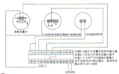 渦街流(liu)量計與流量(liang)積算儀接線(xian)方法