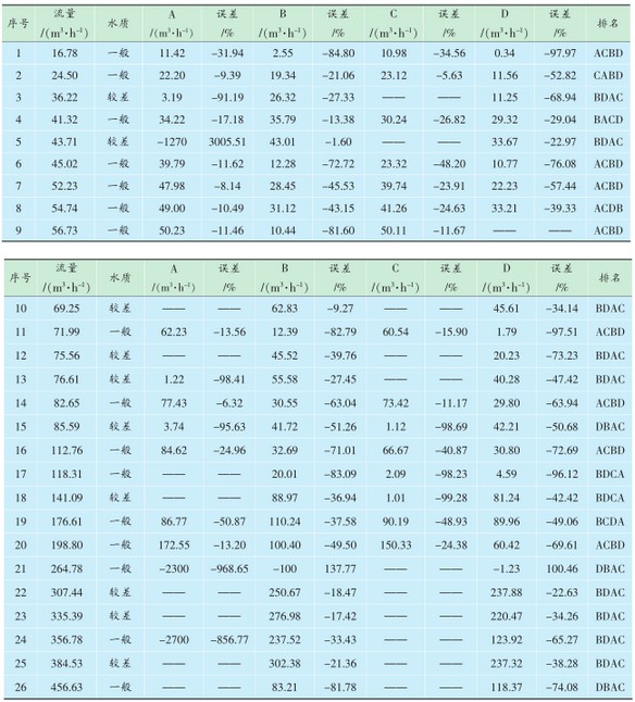 表2 一般水質時(shi)流量計誤差統計(ji)