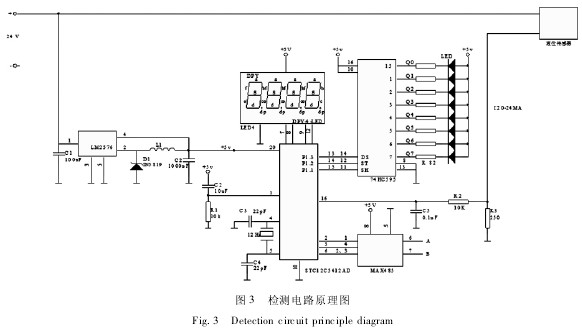0引言 液位(wèi)包括液位(wèi)信号器和(hé)連續液位(wèi)測量兩種(zhong)。液位信💚号(hào)器是對幾(jǐ)個固定位(wei)置的液位(wei)進行測量(liàng),用于液位(wei)的上❓、下限(xiàn)報警等;連(lián)續液位測(cè)量是對液(yè)位連續地(dì)進行測量(liàng),廣泛應用(yòng)于農田灌(guan)溉、定量施(shi)量、高爐沖(chòng)渣水位測(ce)量、環境監(jian)測等農業(ye)生産領域(yù),具有非常(cháng)重要的意(yì)義。目前,對(duì)液位測量(liàng)的精度要(yao)求不僅愈(yù)來愈高,且(qie)需要測量(liàng)儀能夠适(shì)應一些特(te)殊環境,如(ru)高溫、高壓(yā)、強放射性(xìng)及強腐蝕(shí)性等條件(jian)。液态肥因(yīn)其生産費(fei)用低☂️、肥效(xiao)高、易吸收(shōu)、節支增産(chǎn)效果🐕顯著(zhe)及施用過(guò)程中可👌以(yǐ)根據需要(yào)加入土壤(rang)所缺♍少的(de)植物營養(yǎng)元素等優(you)勢迅速得(de)到了廣泛(fan)應用💜。而變(bian)量施肥作(zuo)爲農業的(de)重要部分(fèn),其技術基(ji)礎就☁️是對(duì)❤️液肥液位(wei)的準确控(kòng)🧑🏾🤝🧑🏼制。目前🌈市(shi)場上,液位(wei)控制系統(tong)大緻可分(fèn)爲以下兩(liang)種: 1)機械式(shì)控制系統(tong)。機械式控(kòng)制系統結(jié)構簡單、成(chéng)本低廉;但(dàn)這🧑🏾🤝🧑🏼種控制(zhi)裝置故障(zhàng)多、誤動作(zuo)多,且隻能(néng)單獨控制(zhì),與計算🆚機(ji)進行通信(xin)較難實現(xian)。 2)交流調壓(ya)/變頻調速(sù)控制系統(tǒng)。該系統是(shi)通過安裝(zhuang)在🥰水👄泵出(chu)口管道上(shàng)的壓力傳(chuán)感器,把出(chū)口壓力變(bian)🌍成标🥰準工(gōng)業電❓信号(hào)🤩的模拟信(xìn)号,經過前(qián)置放大、多(duo)路切換、A/D變(biàn)換成數字(zì)信号傳送(song)到單片機(ji),經單片機(jī)運算與給(gěi)♻️定量的比(bǐ)較,進行PID運(yùn)算,得出調(diao)節參量;經(jīng)由D/A變換給(gei)調壓/變頻(pín)調速👄裝置(zhì)輸入給定(ding)端,控制其(qi)輸出電壓(ya)變化🐇,來調(diào)節電機的(de)轉速,以達(dá)到控制水(shui)位的目的(de)。 本文以液(yè)态施肥機(jī)爲依托,針(zhēn)對一定體(tǐ)積的液肥(fei)進行液位(wèi)試驗,通過(guo)以單片機(ji)和投入式(shì)液位計爲(wei)主要硬件(jian)資源設計(jì)硬件電路(lu),畫出相應(yīng)的軟件⭐流(liu)程圖進行(háng)⭕測試。數據(ju)分析驗證(zhèng)表明:該傳(chuán)感器在液(ye)肥液位測(ce)量中安裝(zhuāng)維💃護方便(bian),能适應液(ye)肥這種特(te)殊環境,其(qí)容㊙️量和液(yè)🌈位高度的(de)測量誤差(cha)也滿足🌈實(shí)際要求。 1系(xì)統工作原(yuan)理及組成(cheng) 微壓式液(yè)位計采用(yong)的是壓力(li)敏感元件(jian)實現力-電(dian)轉換。傳感(gǎn)器💜的液位(wei)量程是0~1.3m,且(qie)這段量程(cheng)液位所對(dui)應的深度(dù)♈約合壓力(li)💰相比其他(ta)要小很多(duō),因而稱其(qí)爲“微壓式(shi)”。本系統是(shi)所選的正(zheng)是微壓式(shi)傳感器,它(ta)将液位信(xin)号轉換爲(wei)4~20mA标準電信(xin)号輸出。 若(ruò)設所測液(yè)體密度爲(wèi)ρ,液位高度(dù)爲h,大氣壓(ya)爲ρ0,重力加(jia)速🔆度爲❤️g,則(zé)液體所受(shou)壓力p=ρgh+ρ0。這時(shi),爲抵消大(dà)氣壓力變(bian)化所帶來(lái)的測量誤(wu)差,傳感器(qi)變送器部(bu)分采用導(dǎo)氣電纜将(jiang)大氣壓力(lì)ρ0引入敏感(gan)元件的負(fù)壓腔,進而(ér)使p=ρgh。顯然🚶,若(ruò)已知液體(ti)密度,通過(guò)測取壓力(li)p就可換算(suan)出相應的(de)🈲液位高度(du)。 1.1單片機選(xuǎn)型 該系統(tǒng)結構相對(duì)簡單、運行(háng)速度快,考(kǎo)慮到功能(neng)和㊙️成🚩本👅兼(jiān)💞顧㊙️,采用以(yǐ)擴展性51系(xì)列單片機(jī)STC12C5412AD爲核心控(kòng)制元件。該(gāi)芯片具⭐有(you)12kB用戶可🥰自(zi)行安排的(de)FLASH及FEPROM空間比(bi)例;在同樣(yang)的工作頻(pin)率下☂️,平均(jun1)指令運算(suan)速度是普(pu)通8051的8~12倍[4],滿(man)足🌍系統對(duì)數據處理(li)的要求,且(qiě)掉🔆電模式(shì)可由外部(bù)中斷喚醒(xǐng),适用車載(zai)信息系統(tǒng)。系統設計(jì)方⭐案圖如(rú)圖1所 1.2投入(rù)式液位計(ji)選型 其基(ji)于所測液(yè)體靜壓與(yǔ)該液體的(de)高度成比(bi)例的原理(lǐ),再将💃靜壓(yā)轉換爲電(dian)信号,實現(xiàn)非電量到(dao)電量💃的變(biàn)換,利用這(zhè)一特性來(lai)🚩完成對液(yè)位的測量(liàng)。主要🔴技術(shù)參數如下(xia):量程1.3m,精度(du)0.5%Fs,電壓18~36VDC,輸出(chu)4~20mA。 其優點包(bāo)括:①能實時(shi)測量罐内(nèi)各點液位(wèi);②直流4~20mA标準(zhǔn)電♋流信号(hào)輸出;③密封(feng)性好,測量(liang)元件不與(yu)液肥直接(jie)接觸,避免(miǎn)了液肥對(dui)元件的腐(fu)蝕。 2硬件電(dian)路設計 2.1電(dian)源電路設(she)計 電源電(dian)路圖如圖(tú)2所示。圖2中(zhong),爲了保證(zheng)液位傳感(gan)器能獲得(de)24V的直流供(gòng)電,選用具(ju)有DC-DC單片控(kòng)制電路功(gong)能的MC34063芯🌂片(piàn),片㊙️内包🐅含(hán)有溫度補(bǔ)償帶隙基(ji)準源,能輸(shū)出1.5A的開關(guān)電源,且🐕是(shì)使用最少(shǎo)的外接元(yuán)件構成的(de)升壓變換(huàn)器、降壓變(bian)換💔器和電(diàn)源反向器(qì)[5]。 本系統電(dian)源電路采(cai)用具有升(shēng)壓轉換作(zuò)用的MC34063芯片(piàn),與電感L、二(èr)極🌍管D3、三極(jí)管TIP122一起構(gou)