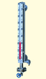 在您選用(yong)此産品前我們(men)先将磁性翻柱(zhu)液位計的工☂️作(zuo)✔️原理作一簡單(dān)的介紹。它有一(yi)容納浮球的腔(qiang)體我們稱其爲(wèi)💛主體管或外殼(ke),它通過法蘭或(huò)其他接口與☀️容(róng)器組成一個連(lián)通器🈲;這樣它腔(qiang)體内的液面與(yu)容器内的液面(mian)是相同高度的(de),所以腔體内的(de)浮球會随着♊容(róng)器内液面的升(shēng)降而升降;這時(shí)候我🧑🏾🤝🧑🏼們并不能(neng)看到液位,所以(yǐ)我們在腔體的(de)外面裝了一個(gè)翻柱顯示器,因(yīn)爲我😘們在制造(zào)✔️浮球時在浮球(qiú)🧡沉入液體與浮(fú)出部分的交界(jie)處安裝了磁鋼(gāng),它與浮球随液(yè)🏃面升降時,它的(de)磁性透過外殼(ké)傳遞給翻柱顯(xiǎn)示器,推動磁🍓翻(fān)柱翻轉180°;由于磁(ci)翻柱是有紅、白(bai)🌈兩個半圓柱💰合(hé)成的圓柱體🚶,所(suo)以翻轉180°後朝向(xiàng)翻柱⚽顯示🔱器外(wai)的會改變顔色(sè)(液面以下紅色(se)、以上白色),兩色(sè)交界處即是液(ye)面的高度。