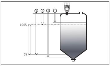注:使(shi)用透鏡(jing)雷達液(yè)位計時(shí),務必保(bǎo)證最高(gao)料位不(bu)能進入(ru)測量🔱盲(máng)區(圖中(zhong)1所示區(qu)域)。