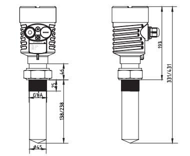 2. SKD55棒式(shì)防腐雷達物(wu)位計外型尺(chi)寸圖