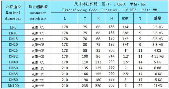 電動球閥産(chǎn)品尺寸