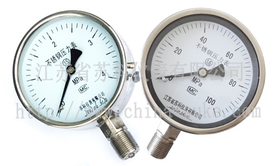 (4)全不鏽鋼(gāng)壓力表分(fen)普通型和(he)耐震型。
