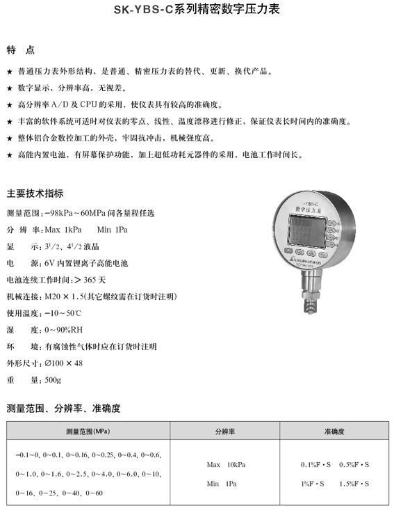 SK-YBS-C系列(lie)精密數(shu)字壓力(lì)表