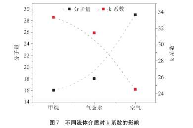 根據(jù)三種氣(qì)體介質(zhì)的分子(zi)量分别(bie)爲18(H20)、29(空氣(qi))、16(CH4),與k系數(shu)的對應(ying)關系👈如(ru)圖7所示(shi);流體介(jie)質的分(fèn)子量越(yue)大,h系數(shù)越小;随(sui)着分子(zǐ)量的增(zēng)大、h:系數(shu)逐漸減(jian)小。