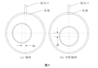 本文孔(kǒng)闆對中(zhong)性是指(zhǐ)在安裝(zhuang)孔闆或(huo)實驗室(shì)檢定孔(kǒng)闆時,孔(kong)闆孔口(kǒu)的中心(xin)線與管(guan)道中心(xin)線--緻程(cheng)度,将上(shang)述中心(xin)線的偏(piān)離距離(li)作爲試(shi)驗因子(zi);如圖8所(suo)示,偏離(li)分爲對(duì)稱偏離(lí)(DCPL)和偏離(li)(PL)兩種;分(fen)♍别取偏(pian)離距離(lí)△x爲5mm、10mm、15mm.20mm,楔角(jiao)爲45°,介質(zhi)爲🤟空氣(qì)進行💜仿(pang)真實驗(yàn)等。
