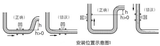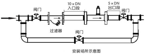 ●水平安(an)裝傳感(gan)器要求(qiú)管道不(bú)應有目(mù)測可察(cha)覺的傾(qing)斜(一般(bān)在5°以内(nèi)),垂直安(an)裝傳感(gan)器管道(dào)垂直度(du)偏差亦(yi)應小于(yú)5°。在不能(néng)停流的(de)場所,應(ying)裝旁通(tong)管和可(kě)靠的截(jie)止閥(見(jiàn)圖4-7),測量(liàng)時要确(que)保旁通(tong)管無洩(xiè)漏。